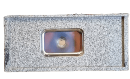 Pia de granito Cinza Corumbá com dimensões de 1,60 m x 0,55 m, equipada com 1 cuba em aço inox polido. Apresenta uma tonalidade neutra com veios naturais, proporcionando sofisticação e praticidade. É resistente, durável e fácil de manter, ideal para cozinhas modernas.